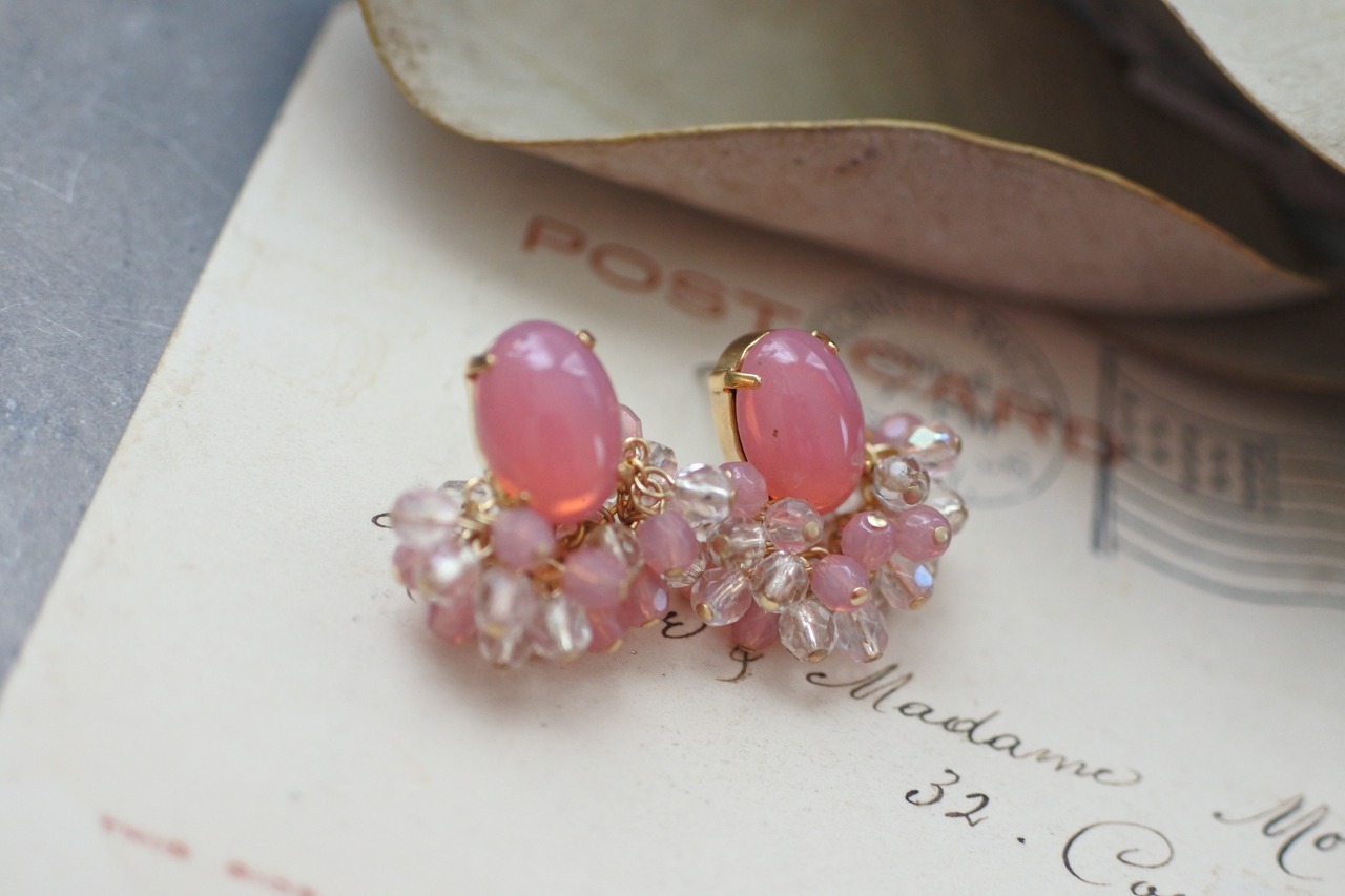 チェコガラスをたっぷり使った耳飾りです。