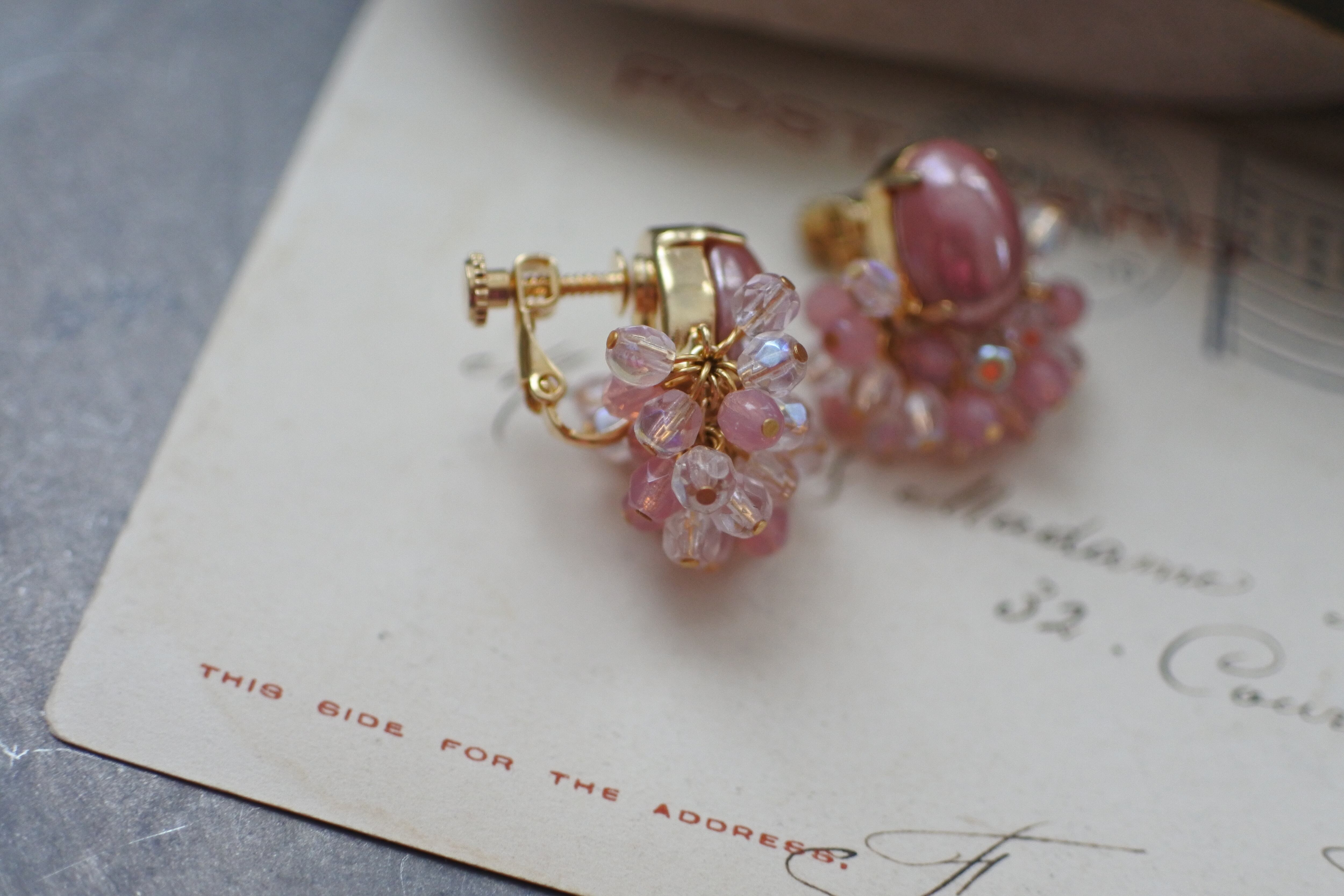 チェコガラスをたっぷり使った耳飾りです。