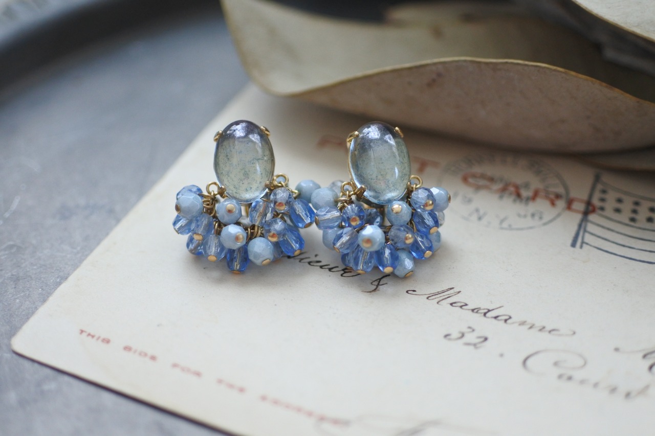ガラスならではの質感、ほどよいサイズ感で普段遣いにもお使いいただきやすい耳飾り。