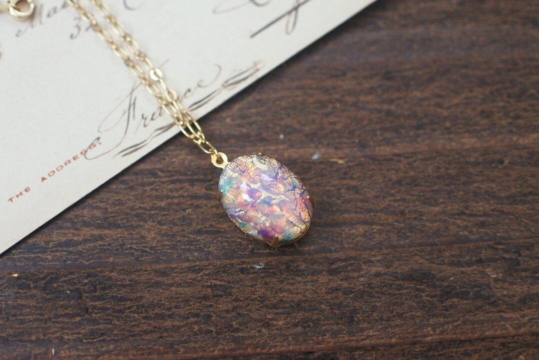 やさしいキラキラのファイアオパールガラスのネックレスです。