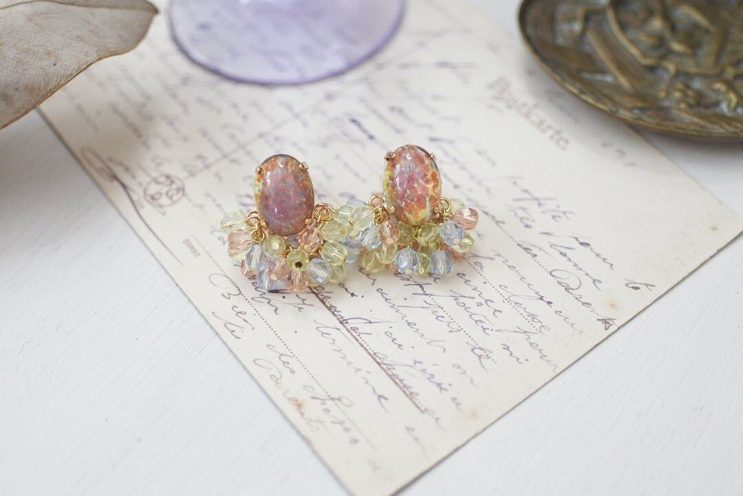 ガラスならではの質感、ほどよいサイズ感で普段遣いにもお使いいただきやすい耳飾り。